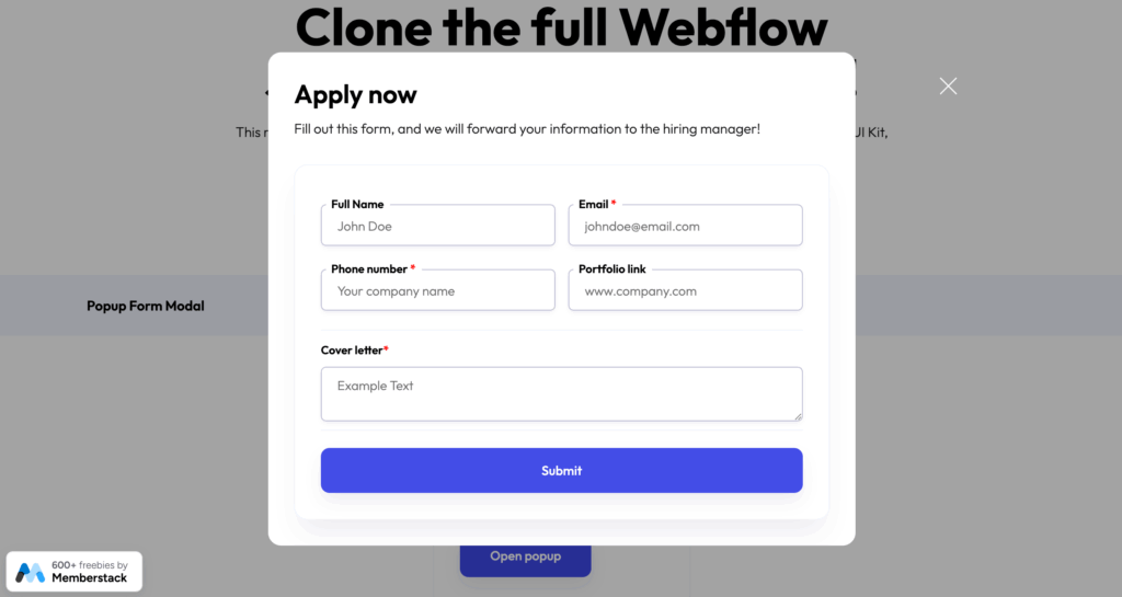 - Easy drag-and-drop form creation inside the Webflow Designer