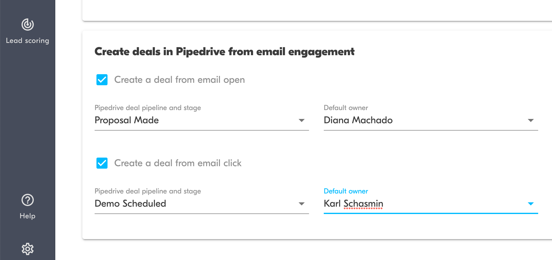 Choose how marketing email engagement is visible for the sales team in Pipedrive and record web visits as an additional lead signal. Coming soon.