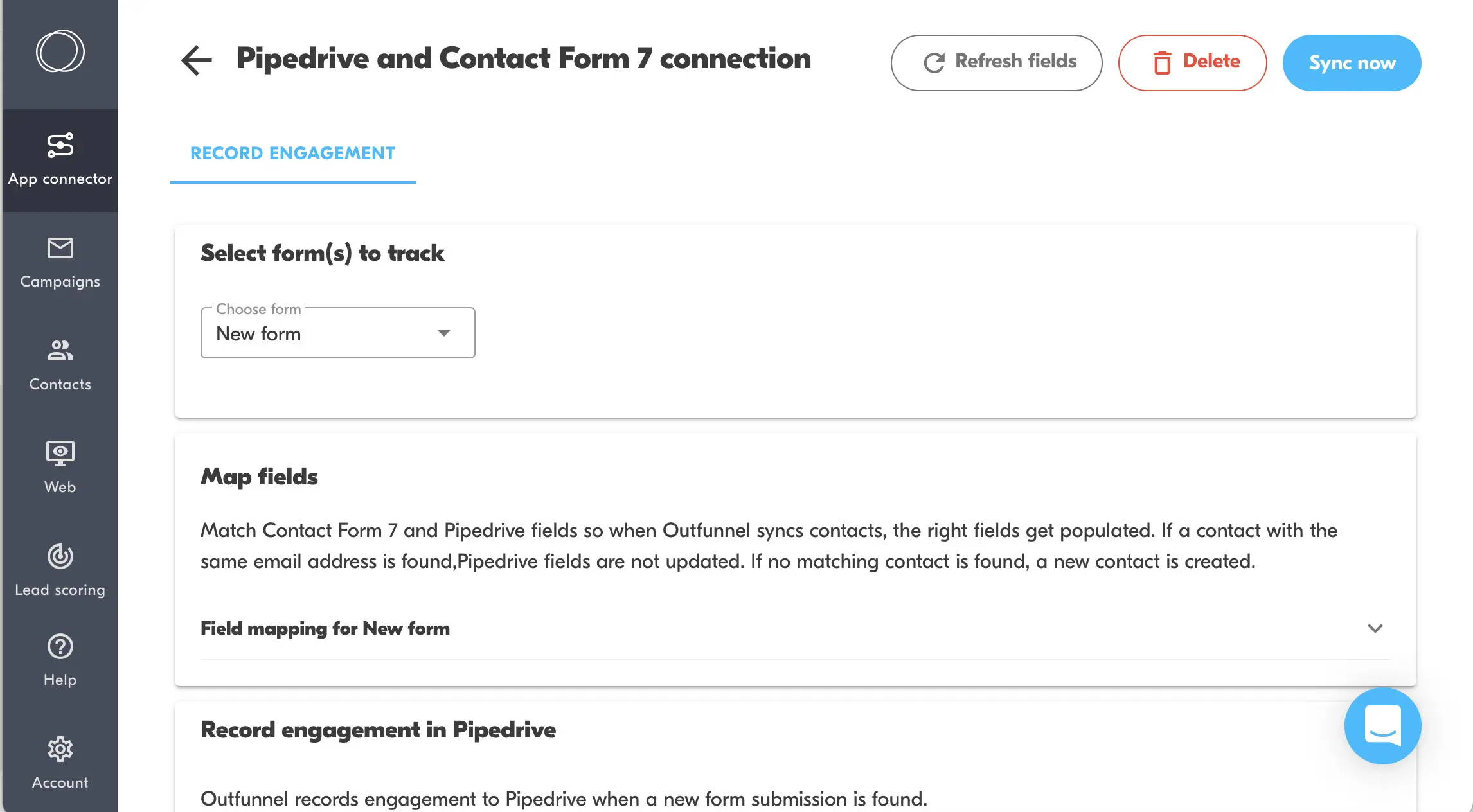 Sync contacts from form entries to Pipedrive and record form fills for the contacts.