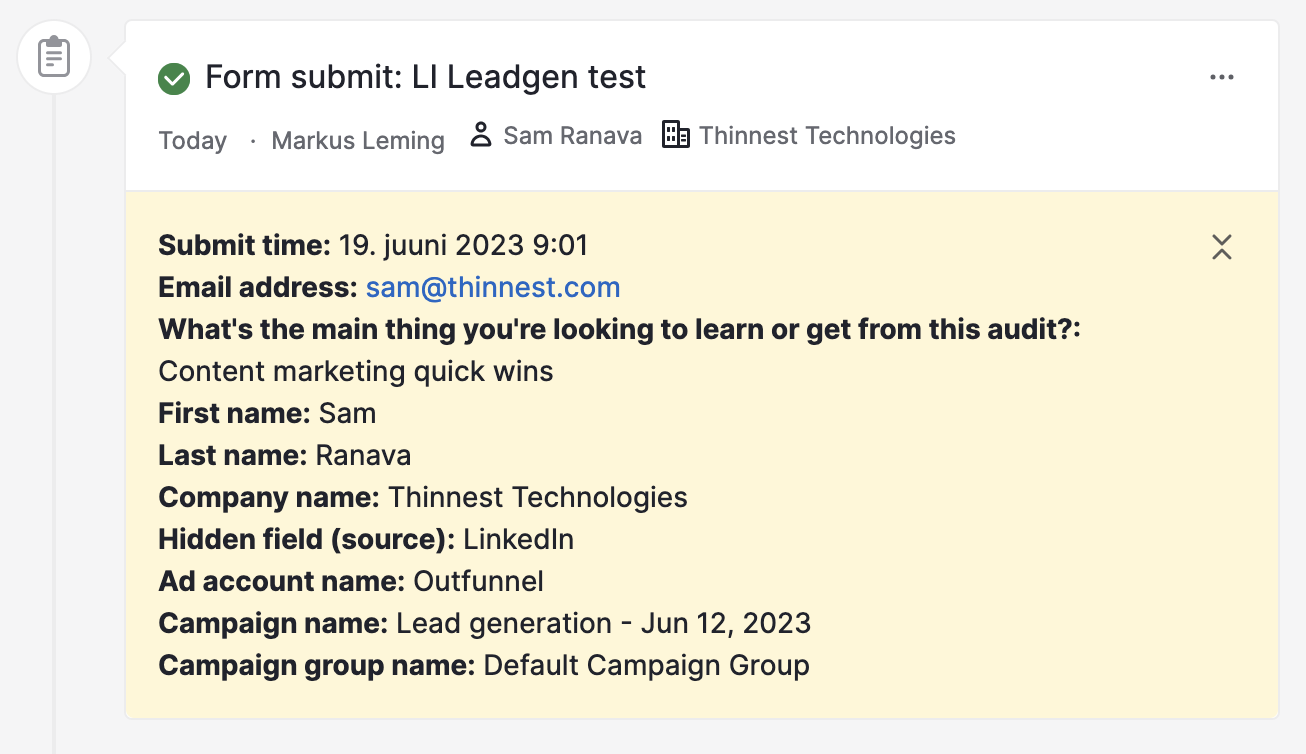 Sync new LinkedIn Lead Ads submissions over to Pipedrive in seconds.