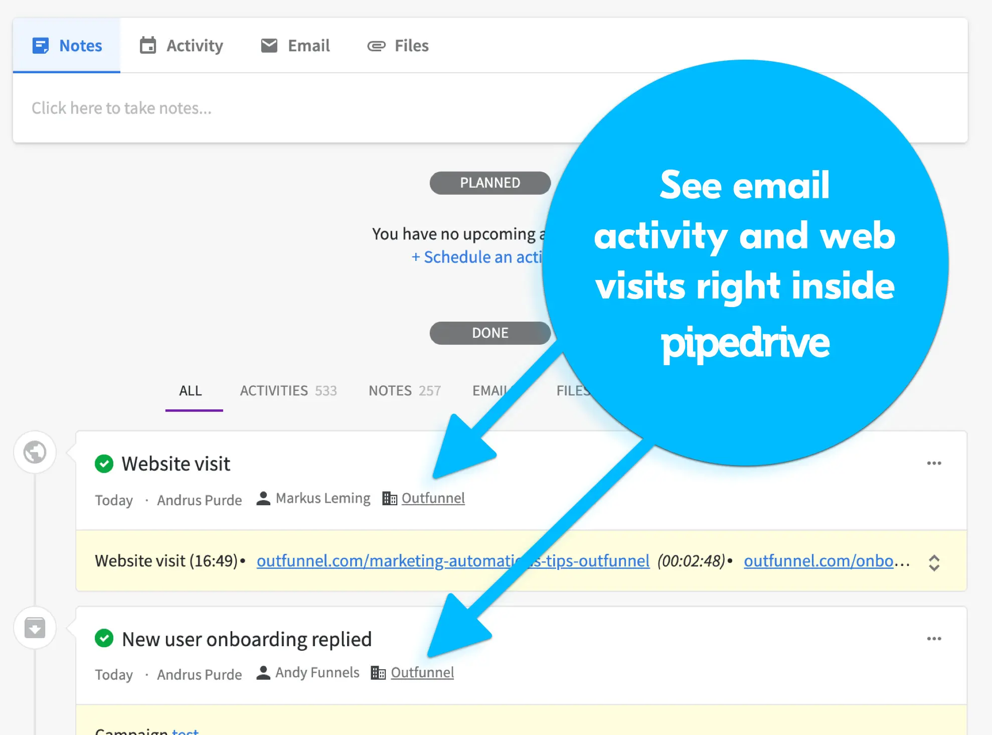 Choose how ActiveCampaign email opens, clicks and other events are visible for the sales team in Pipedrive. You can also sync historical email engagement over.