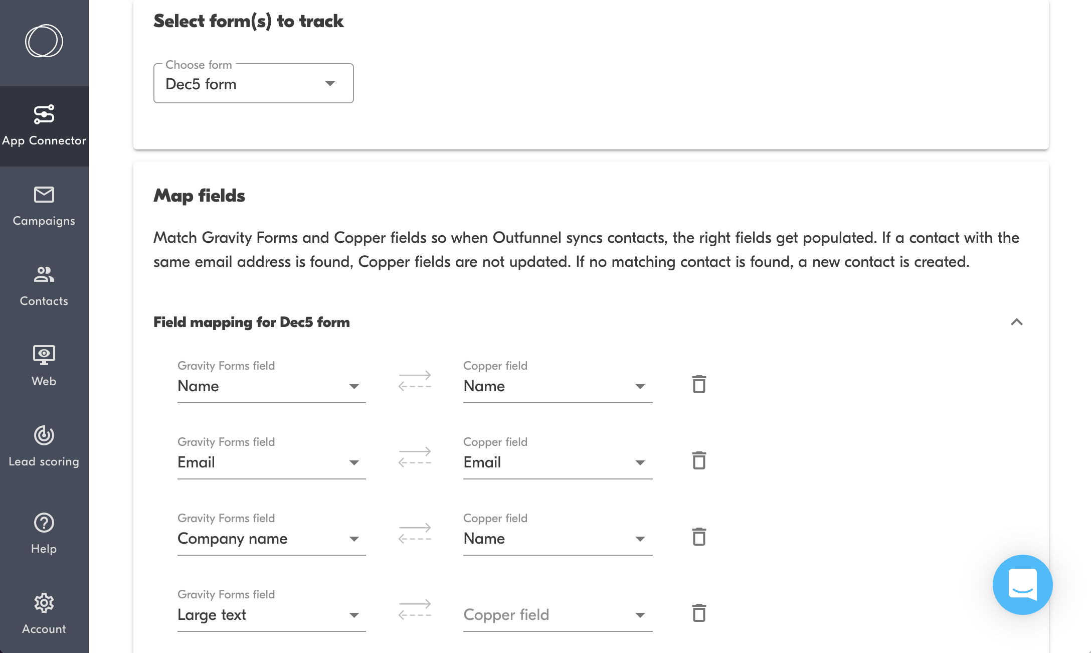 Sync contacts from Gravity Forms to Copper, record the form submissions on contact records, and track web visits.
