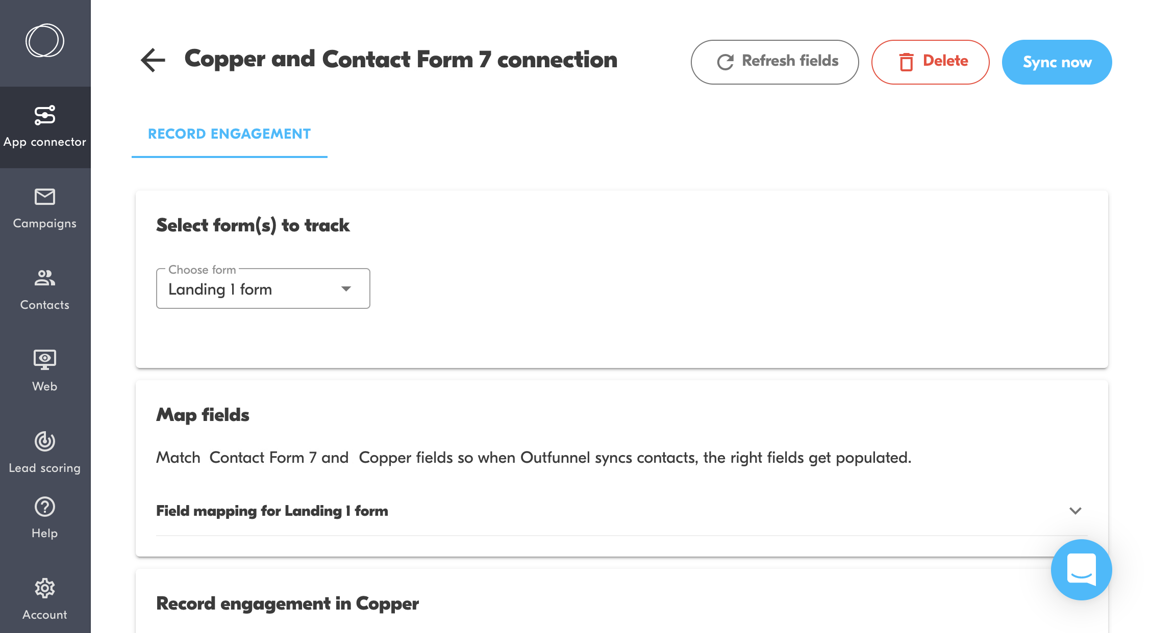 Sync contacts from Contact Form 7 form fills to Copper, record the form submissions on contact records, and track web visits.