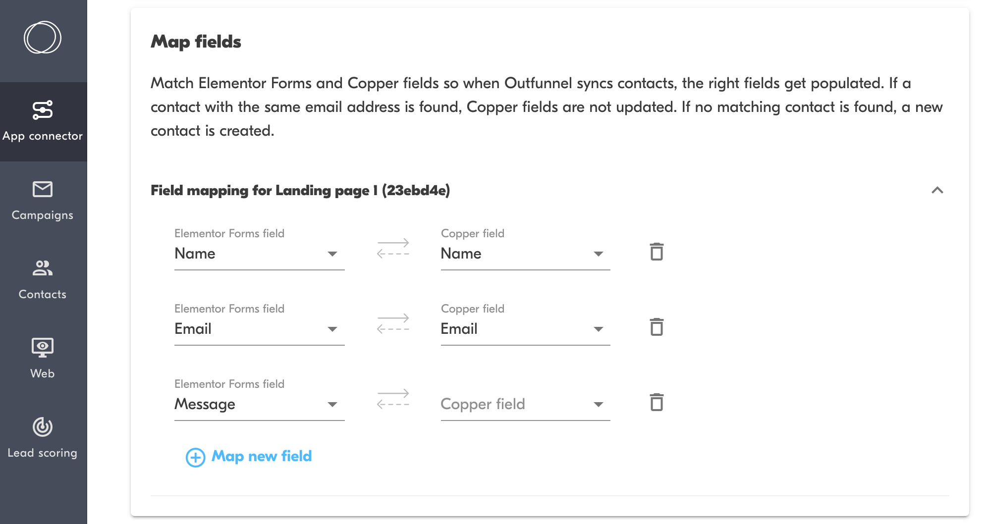 How it works: set up field mapping so that the fields of web forms are matched with those in Copper.