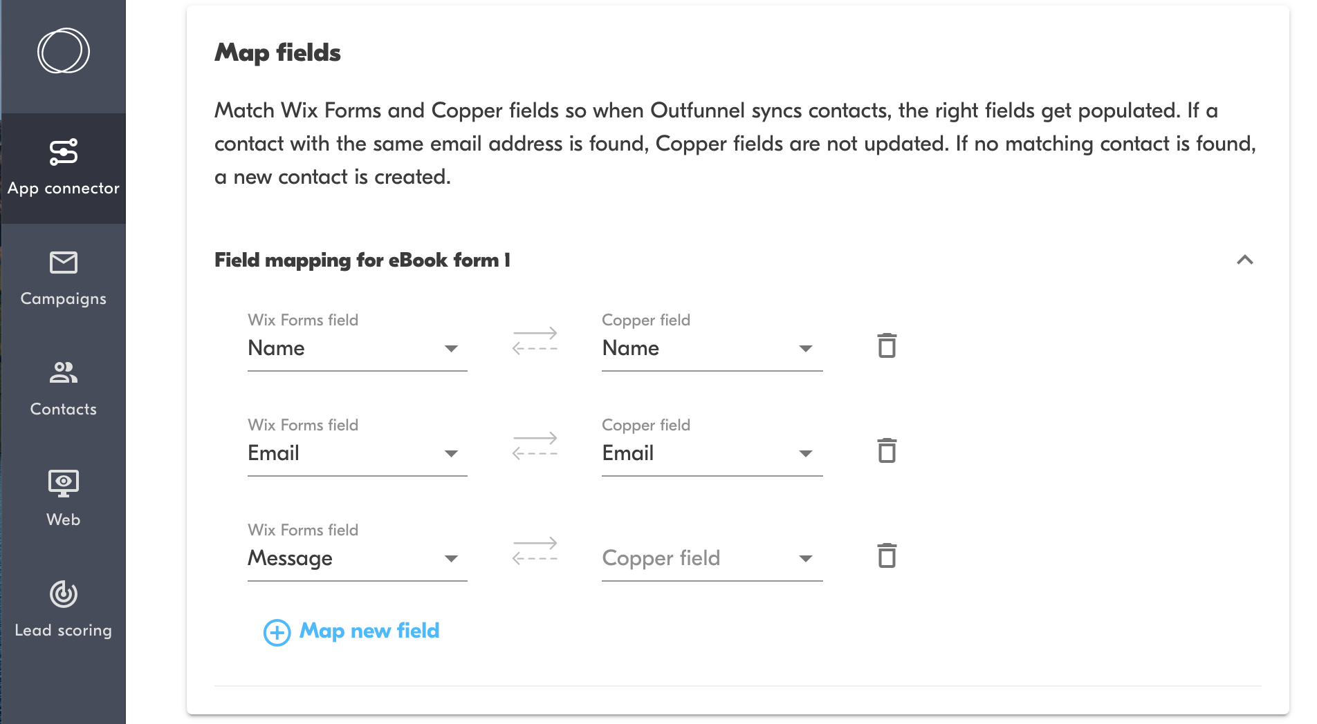 How it works: configure field mapping so that the fields of your web forms are matched with those in Copper.