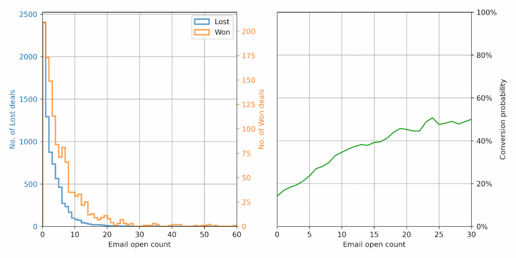 | Number of email opens | Deal conversion probability |