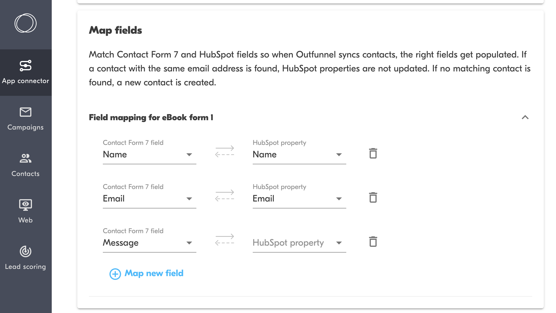How it works: Set up field mapping so that Contact Form 7 fields are matched to HubSpot properties.