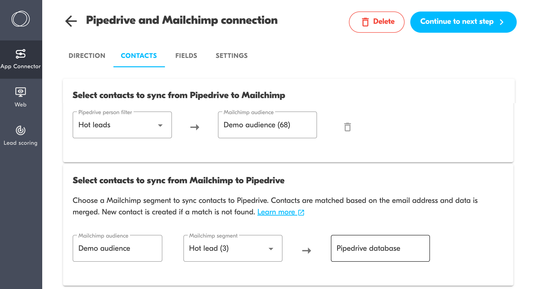 With Outfunnel, it’s easy to deeply integrate Mailchimp with CRM’s like Pipedrive, HubSpot and Salesforce.