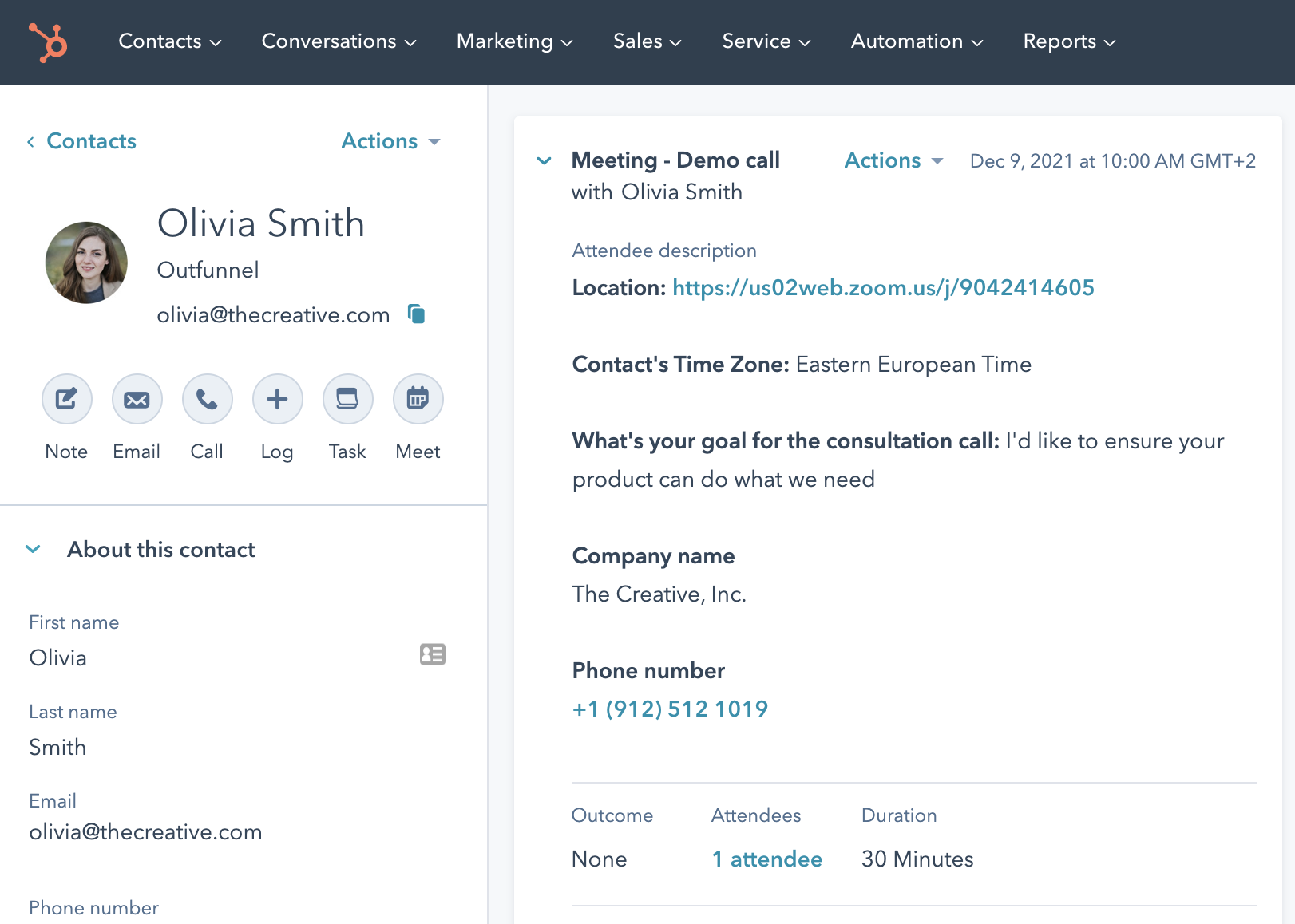 How it works: Regardless if the participant of your Calendly event is a new or existing contact in HubSpot, the Calendly event is recorded for the contact.