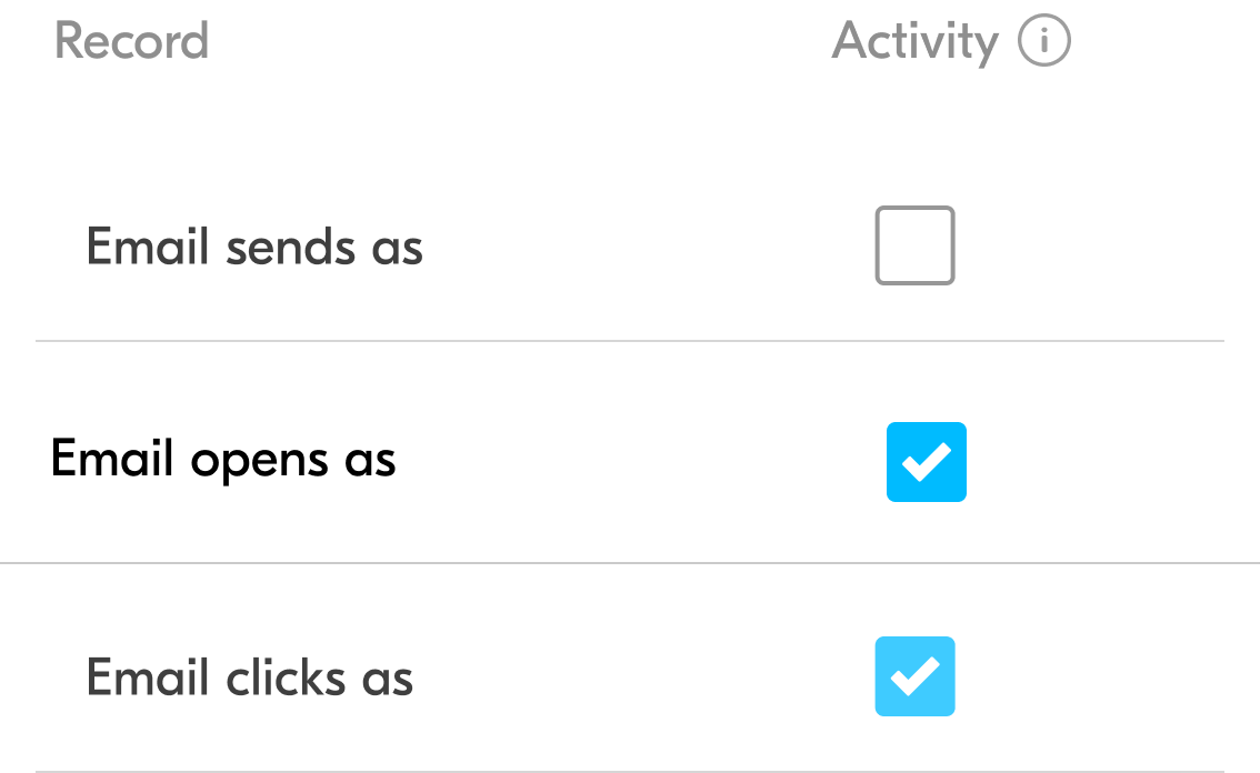 Automatically record opens, clicks, unsubscribes, and bounces in your CRM for better context for the sales team.