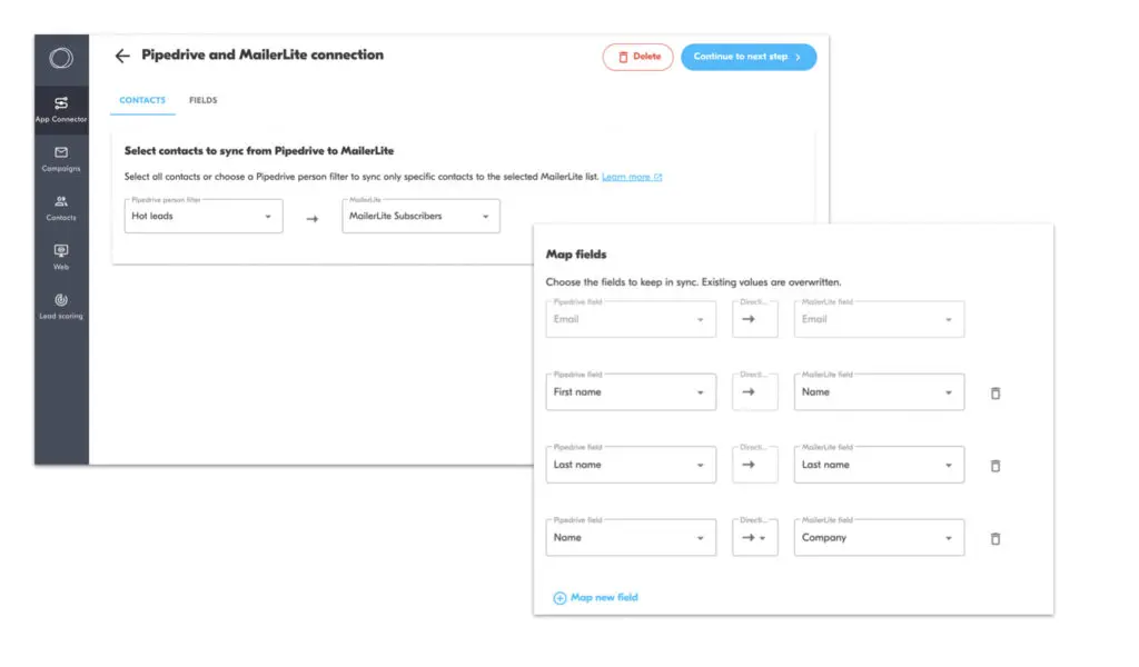 - Bi-directional contact sync – Ensures all contacts and custom fields stay updated.